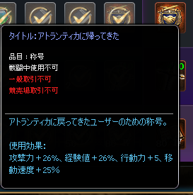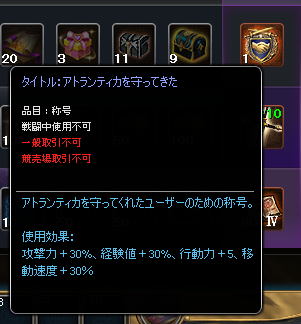 カーソルをアイテムアイコンに置くと、各アイテムの詳細を確認できます。