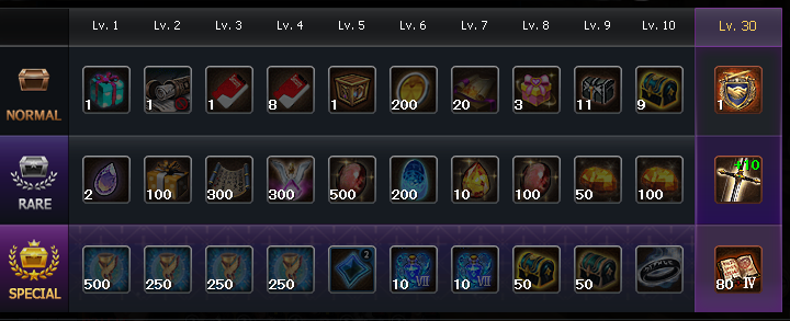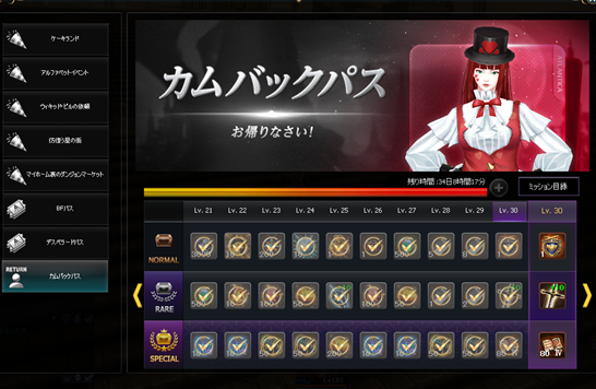 「RARE」「SPECIAL」は、「カムバックパス」と「ロイヤルパス」で同じ内容となっております。