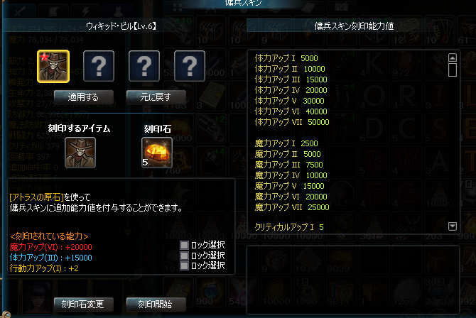 スキン刻印は3個まで可能です。強化カテゴリーはⅦまで。