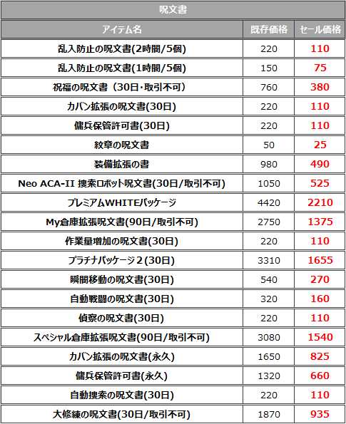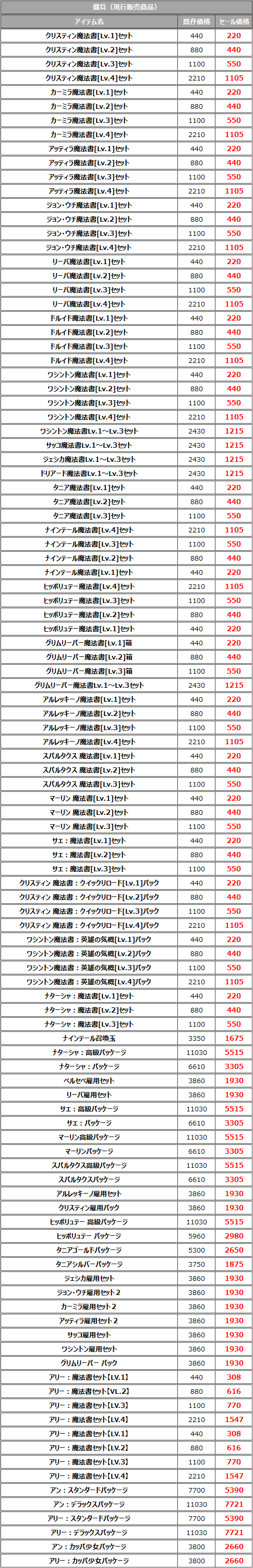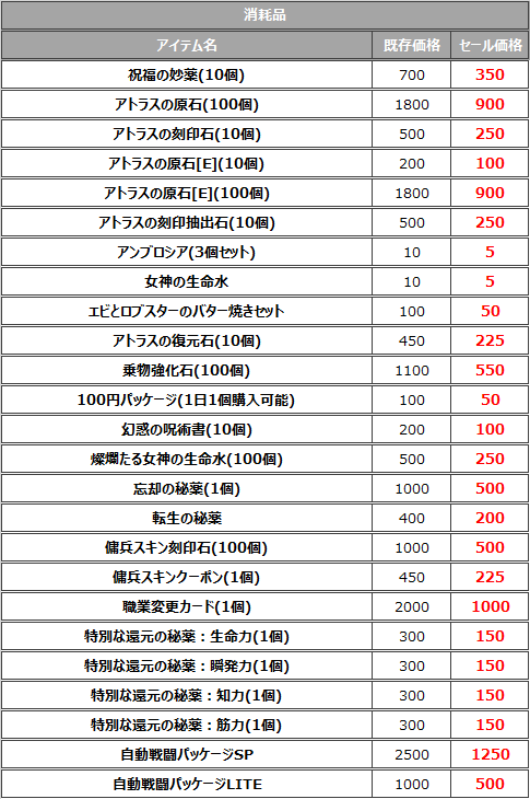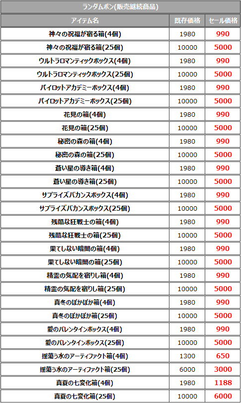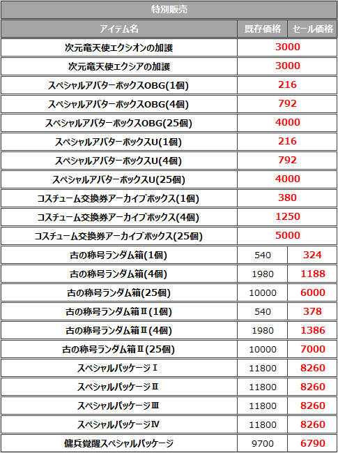 その他の特別販売品の詳細は告知ページをご参照ください。