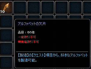 このアイテムを利用すると、製造の「クエスト」タブで好きなアルファベットを直接製造可能です。