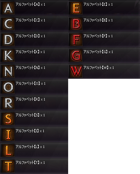 分解すると「アルファベットの欠片」というアイテムを獲得できます。