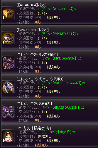 限定アイテムとそれぞれ交換できます。