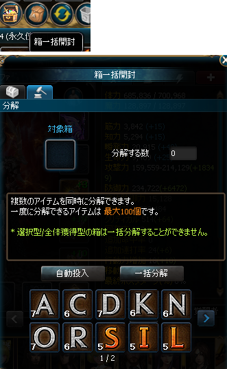 イベントリーの下の方にある「箱一括開封」をクリックし、分解を選択するとそれぞれ分解が可能です。