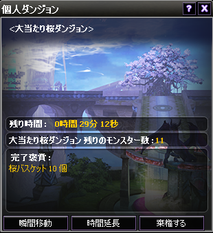 イベント期間中、個人ダンジョン「大当たり桜ダンジョン」が開放されます。