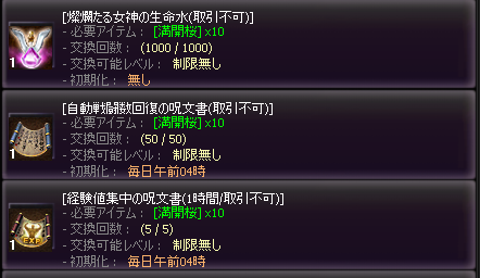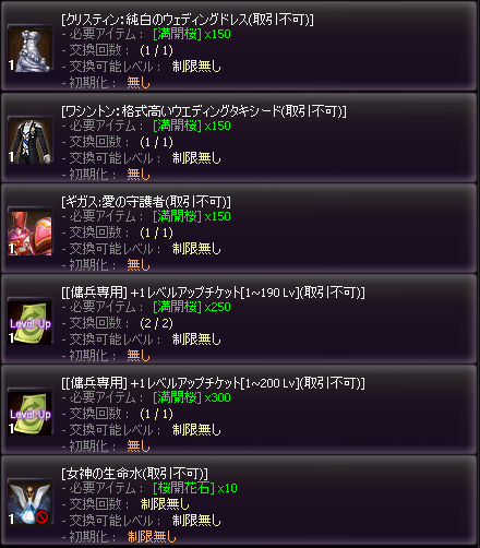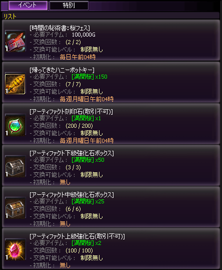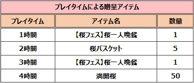 イベント期間中、累積接続時間によって、次のようにアイテムが支給されます。