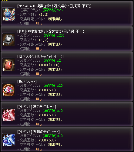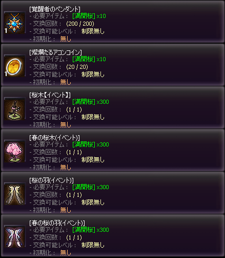 交換アイテムで獲得できる「桜の羽(イベント)」、「春の桜の羽(イベント)」、