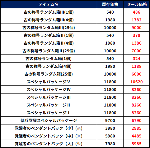 ※「覚醒者のペンダントパック」は3個の購入制限があります。