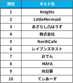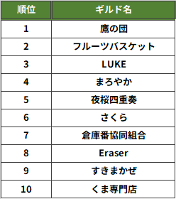 各ギルド内の貢献上位100人」の合計を元に算定しています。