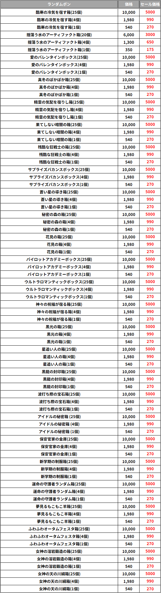ランダム箱を含む大多数の商品を約50%OFFでご提供いたします。
