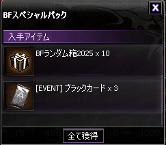 BFスペシャルパックを使用すると、以下のアイテムを獲得できます。