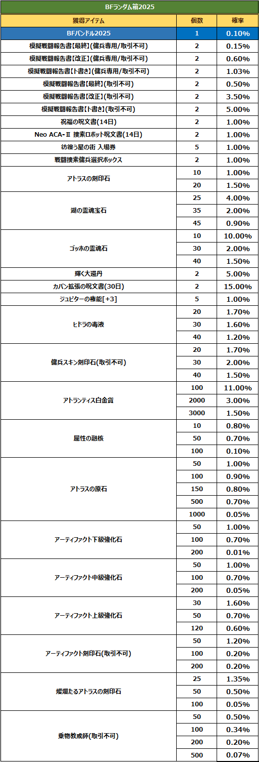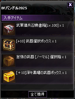 大当たりアイテムとして「BFバンドルパック」が設定されています。