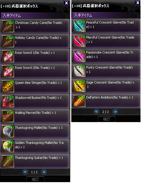 どれも中のアイテムから1個を選んで獲得する選択式箱です。