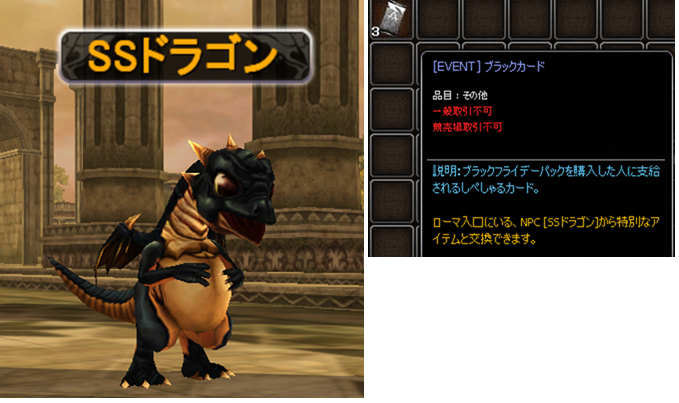 ローマ入口付近にいるアイテム交換NPC「SSドラゴン」からアイテム交換に仕えるアイテムです。