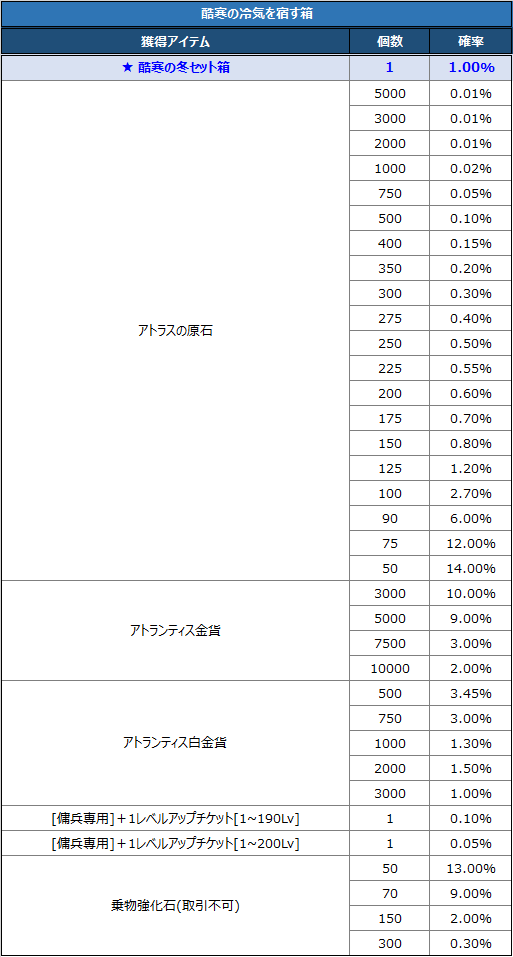 ■「酷寒の冷気を宿す箱」の構成品・確率情報