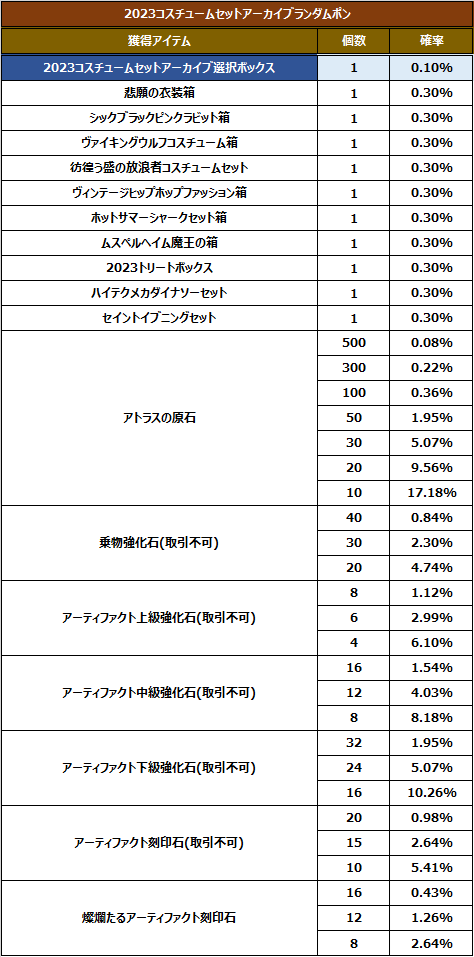 ★特定枠アイテム「2023コスチュームセットアーカイブ選択ボックス」