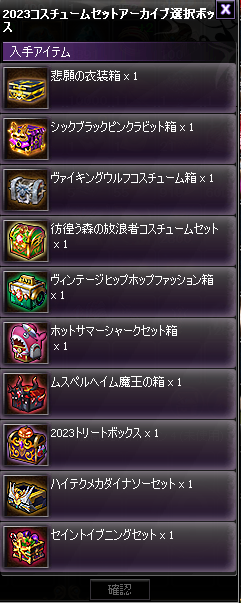 ■2023コスチュームセットアーカイブ選択ボックスの中身