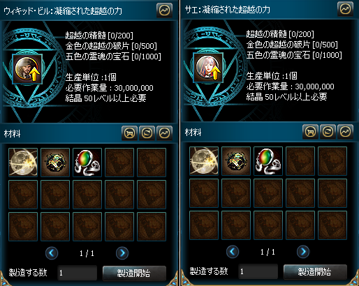 超越には各傭兵ごとに専用アイテムの「凝縮された超越の力」が必要です。