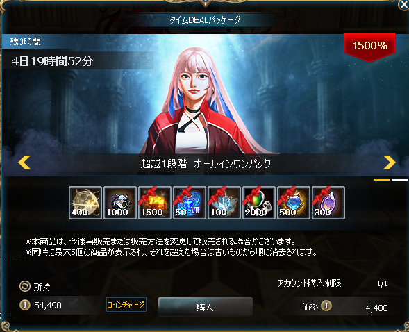 製造に必要な素材である「超越の精髄(有料アイテム)」は、ゲーム内のアイテムモールで獲得可能です。