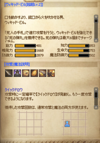 超越Lv2では「勝負師の勘」に行動力減少効果、「ベット」は魔法の範囲攻撃に変化します。