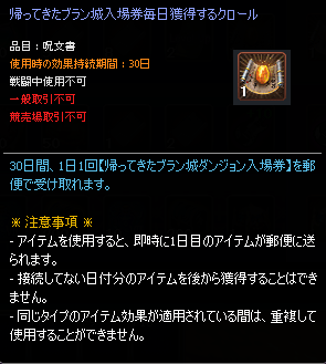 次回のアップデートで追加予定の「帰ってきたブラン城」の入場チケット獲得するクロール等を獲得可能です。